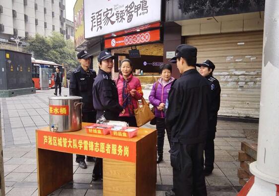 学习雷锋,重在行动。芦淞城管大队转变执法理念,变管理为服务,以设置爱心帮扶点和交通文明劝导作为两条主线贯穿整个学习活动,在芦淞区重点繁华地段设置便民服务台,摆设茶水、药品、针线包等物品为有需要的市民提供便利服务,便民服务台同时还承担维护该地段的市容秩序、广泛接受社会各界的监督和投诉、向市民宣传城管法规等职能,让市民更好地了解城市管理的内容,熟悉城管法律法规和规章制度。芦淞城管以实际行动践行雷锋精神,寓服务于管理,让更多的市民切身感受芦淞城管心系群众、乐于助人的优良传统,以此赢得市民的信任和支持。