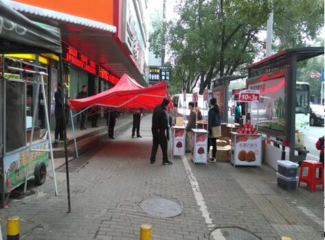 昨日,我大队在日常巡查管理中发现建设路沿线有不少流动摊贩沿街设点,有的甚至将帐篷搭在人行道上,将整个人行道都“占据”了,严重影响了市民的正常通行,我大队执法队员上前对违章摊贩进行劝告、教育、规范,帮助摊贩将违章设置的帐篷收好,并向其告知,如需设摊促销,必须在不影响行人通行的情况下向市局进行审批,审批通过后方可进行促销,该流动摊贩对于执法队员的帮助和解答表示了感谢,并承诺今后规范经营。