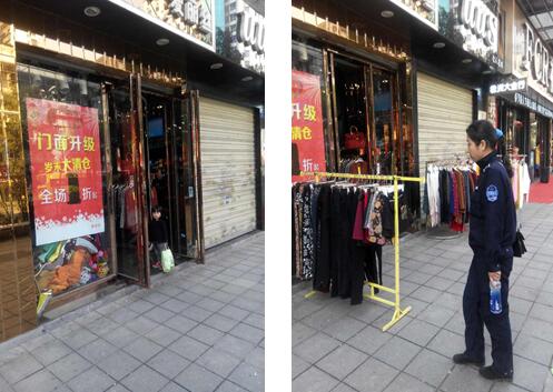 在建设南路五中队辖区,城管执法人员发现不少经营户存为招揽顾客,将广告乱贴乱挂,而且个别店主将大量货物占据着人行道,出现占道经营的现象,执法队员以宣传教育为主,对各种违规行为,耐心细致地向经营户讲解相关法律法规,并帮助经营户将店外经营物品搬移至室内,要求其主动清除乱贴乱挂广告。