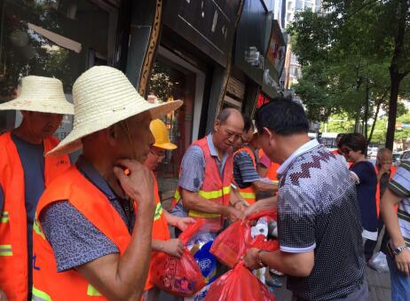 近日,气温一路攀升,炎炎烈日下,区城建局绿化处职工仍冒着高温酷暑,奋战在一线岗位,用辛勤的汗水装扮着城市的美丽。为将组织的关怀和慰问及时传递给绿化一线职工,8月16日下午,市园林局副局长王志坚、工会主席谢丽颖及园林协会会长梁胜平一行到我区中心广场及七一路等重点路段慰问一线职工,给他们送去了夏桑菊、人丹、十滴水、绿豆、白糖等防暑降温物品。