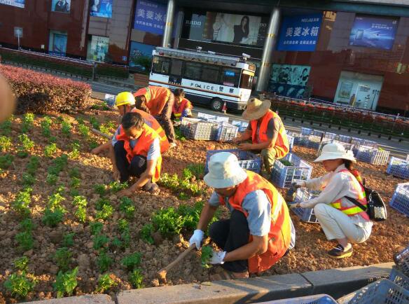 中心广场是我市最繁华的CBD,为让市民充分享受绿化成果,芦淞绿化人避开上下班高峰期,加班加点新栽苗木花卉。近年来,随着我市国家文明城市、国家森林城市成功创建,城市正在一天天变美。可是,在这美景之中,仍有一些不和谐的镜头出现,一些毁绿损绿现象仍常见于街头。在此呼吁大家:珍惜绿化工人的劳动成果,不随意踩踏、采摘绿地花卉,爱绿护绿,从我做起,共同呵护美丽城市。