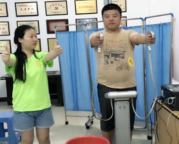 现场对参加比赛活动的人员进行体质检测。符小姐是来自于芦淞区某机关单位的一位工作人员,体侧仪显示体重49.8kg、身高157.2cm,体质指数为20.2,工作人员告诉她体重正常(体质指数18.5—14属于正常,24—28属于超重,大于28为肥胖),属于健康体态;而另一位体重100.2kg、身高173.2cm的袁先生体质指数为33.4,工作人员告知他的体型为肥胖型,并嘱咐他注意健康饮食,多锻炼。