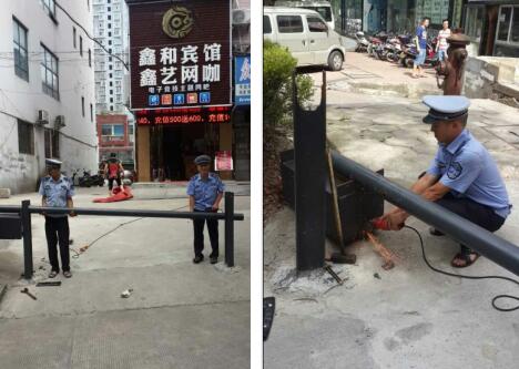 近日,接市民投诉鑫和宾馆门前公共区域被个别商家私设车辆出入栏杆,严重妨碍了周边市民的正常出行。我大队快速反应,立即安排至执法人员前往现场处理,经执法队员现场调查核实,该宾馆前的车辆出入栏杆系商家私自设置,未经任何部门批准,我执法队员对私设栏杆的当事人宣讲了相关法律法规,告知了其违章事实。随后,执法队员与当事人一起找来拆除工具,对私设栏杆进行了拆除。