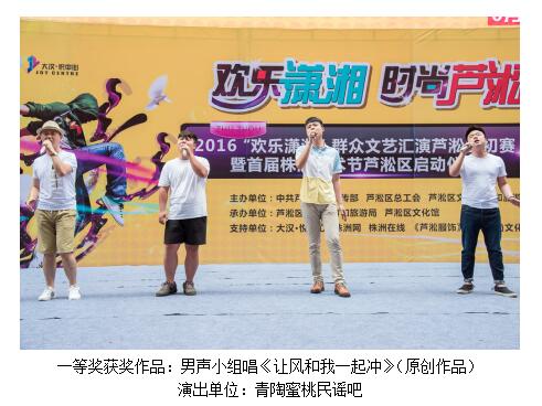 6月18日,芦淞区举行了2016年“欢乐潇湘”群众文艺汇演区级初赛,来自全区30余支队伍、1000多名演员参与活动,表演了一台涵盖歌曲、舞蹈、器乐、戏曲、走秀等多种艺术形式的精彩节目。根据评委的现场评分,结合网络报送节目视频参赛的情况,活动评委会评选出优秀节目一等奖8个、二等奖16个、三等奖12个、优秀奖15个(获奖名单附后)。各获奖单位和个人可在7月11日至7月15日到芦淞区文化体育和旅游局办公室(13-19)领取证书和奖金。