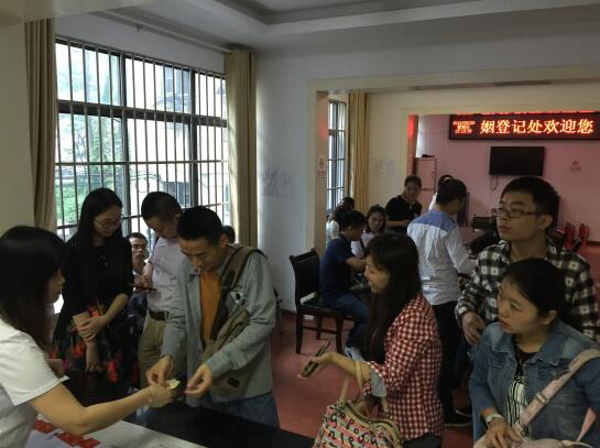 5月20日全天,区民政局婚姻登记处共为60余对新人办理婚姻登记,登记人数超平时的4倍以上。