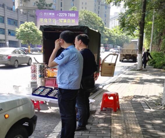 近日,芦淞城管大队执法人员在日常巡查中发现个别游商又将商品摆放在人行道上占道经营。这些摊贩占用和利用城市公共道路资源做自己的生意,对自己的确有利,但是这样一来,更多的却是给道路交通、环境卫生和城市形象带来不良影响,利益受到侵害的也就是广大市民。见此情况,我执法队员上前采取温和的执法方式,以劝导为主,劝导这些商家自行将摊位和商品进行搬离,规范化经营,同时,对于不听劝导,屡禁不止的摊贩,我执法队员对其商品进行暂扣。