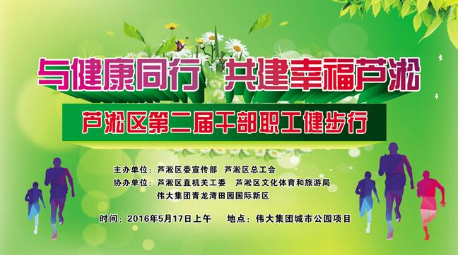 与健康同行,共建幸福芦淞。芦淞区第二届干部职工健步行活动将于5月17日上午在青龙湾田园国际新区城市公园举行。来自芦淞区各街道(乡镇)、区直机关、各企事业单位的1200名职工将用毅行的脚步丈量色彩斑斓的五月,赴一场与健康的约会。