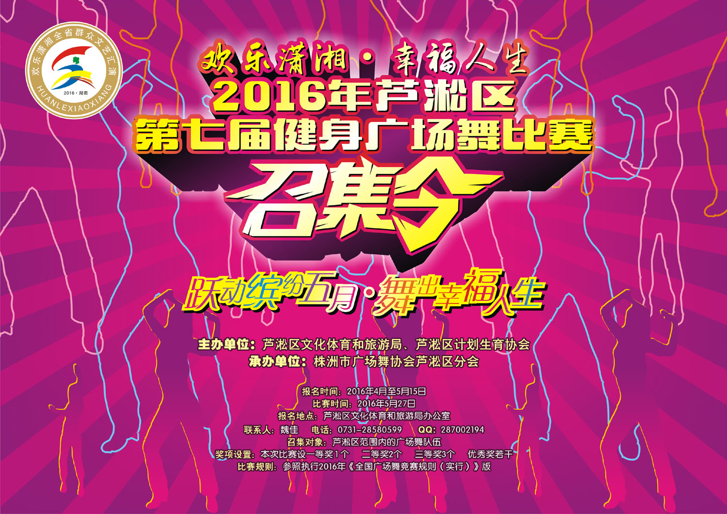跃动缤纷五月,舞出幸福人生。近日,“欢乐潇湘·幸福人生”芦淞区第七届健身广场舞比赛启动报名。比赛由芦淞区文化体育和旅游局、芦淞区计划生育协会主办,株洲市广场舞协会芦淞区分会承办,旨在提高广大人民群众和广大计生协会员主动参与健身的意识,激发人民群众和计生协会员的健身热情,在全社会形成崇尚健身、参与健身、支持和推动计生事业发展的良好氛围,为构建文明、幸福芦淞发挥积极作用。
