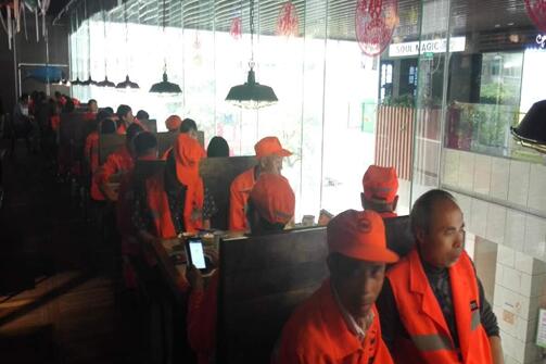 为感谢芦淞区“城市美容师”为环境卫生工作所做出的贡献,株洲市“探鱼”餐饮饮食服务公司于2016年4月29日中午,特别邀请全区100名环卫工人代表齐聚一堂吃“爱心午餐”。环卫工人代表受到了“探鱼”餐饮饮食服务公司的热情招待。该公司负责人表示:“传统的五一劳动节马上就要到了,环卫工人是典型的劳动工人代表,请他们吃午餐,表示一下我们餐饮行业的慰问和祝福,是我们一直以来的心愿。”