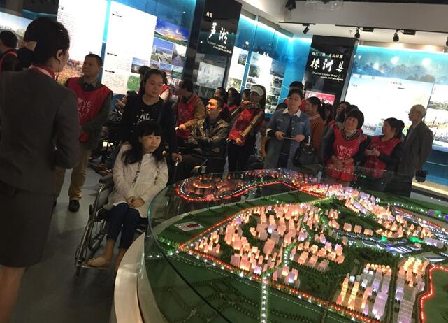 虽然天空下着雨,却丝毫没有减弱大家的热情,反而给残疾朋友带来的是笑声与感动。当天上午,在市规划展览馆内,12位残疾朋友在志愿者的陪同下,仔细聆听讲解员的介绍,参观了全市发展规划蓝图,现场感受了株洲发展的成果。中午,与残疾朋友一起享用“爱心午餐”,随后驱车前往山河科技参观了各式各样民用制造飞机,接着开展座谈交心活动,就居家就业进行分享交流。