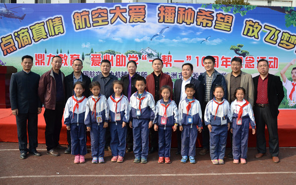 据悉,淞欣学校位于芦淞区城乡结合地域,学校生源情况错综复杂,贫困学生较多,单亲孩子和留守儿童达到半数。为了给这些需要帮助的孩子们送去温暖和爱心,2007年以来,中国航空动力机械研究所团委不断组织志愿者对该校学困生进行爱心助学“一帮一”活动。他们不但资助学生部分学费,给学生买学习用品,还与学生交朋友,进行家访,辅导学习,送航空知识课进校园等等,让学校的贫困学生感受到温暖,收获了希望。今天的爱心帮扶纪念活动,不仅代表着学校对中国航空动力机械研究所团委十年来始终如一的感谢,更是对全体淞欣学子的一次德育教育。使他们怀抱感恩之心,努力学习,去开创美好的明天,回报社会!