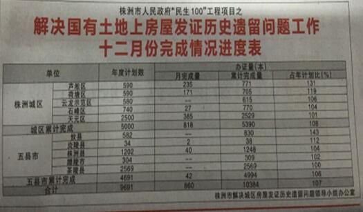 一、 提服务、多举措,破解办证难题。我局高度重视、精心组织,从细化工作流程和拓宽解决房屋发证历史遗留问题的处理办法,从努力加大人员协调、解决问题的能力着手,强化服务理念,进一步提高工作效率。截止2015年12月,芦淞区已完成771户办证量,比年度计划的590户,超出181户,完成率131%。在城市五区中排名第一。