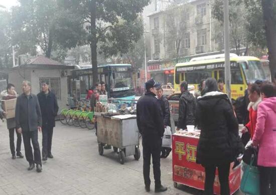 车站路紧邻火车站和市场群,流动人口多,商贸业发达,有不少流动摊贩也聚集在此沿街占道经营,影响市容环境卫生以及市民正常出行。