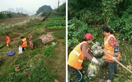在白石港,城管队员对河堤港堤上的菜地采取了地毯式排查,对现留菜地展开扯除,现场清理菜地10块;在湘江庆云河堤沙石码头,环卫工人徒步对河堤开展巡查清理,对河岸及灌木丛中散落垃圾进行人工拾捡,现场清理、清运垃圾7车,巡查清理范围超过1公里;在枫溪港,整治人员对港内遗留违规菜地进行清理,对沿港散落垃圾进行清捡清理菜地20余处;在湘江枫溪河堤,整治人员调用2大型挖掘机,5台渣土运输车辆,对河堤违规倾倒的建筑垃圾、渣土淤泥开展全面清理清运,现场清运渣土30车次,500多立方米,河堤环境得到全面改善,河流河道得到全面疏通。