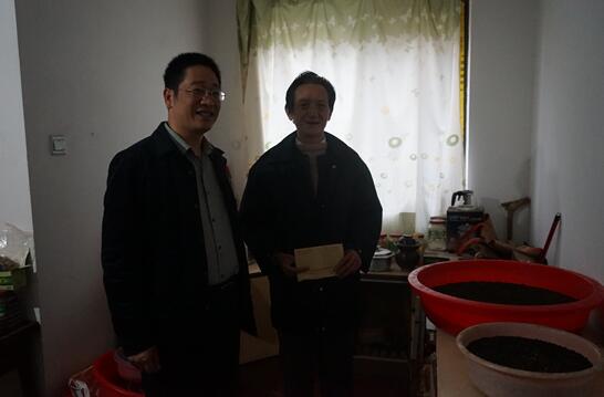 16日下午,区城建局党委委员、副局长罗丁、党员潘利湘来到帮扶对象江世荣家,他今年71岁,住在和谐家园,无工作无收入, 年老体弱无劳动能力,享受低保,家中无任何电器。现天气渐渐寒冷,罗局长一行为他送去了慰问金和烤火炉。