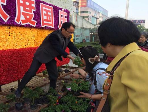 10月15日上午,区城建局绿化处在市中心广场家润多前坪对“中秋·国庆”双节期间摆放的鲜花盆栽进行了免费派送活动。