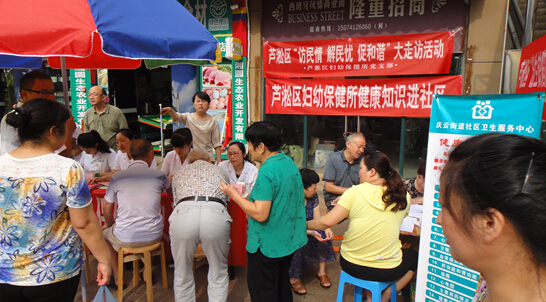 经世皇城是芦淞区“大走访”活动妇幼保健所的责任区,流动人口达80%以上,在全体职工将整个小区所有楼栋都跑过2遍之后,他们发现仅三分之一的家庭愿意接受大走访工作。为进一步走进群众,促进“大走访”全面铺开。妇幼党支部决定,在小区开展一次大型义诊暨“大走访”宣传活动。以送免费体检、免费药品、发放健康折页、摆放健康知识展板的形式,进一步走进群众,打开走访局面。