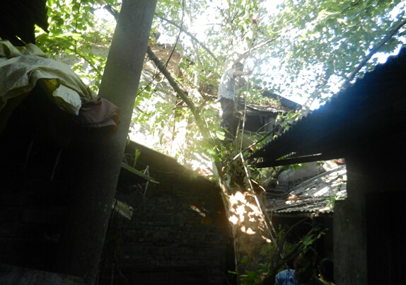 李家坪建设巷这棵危树胸径达120公分,高度达12米,是一棵生长在建设巷居民小区内50多年的大树。由于长年风吹雨打虫噬,这棵树的主干已被掏空,树身发生严重倾斜并已压靠在居民房屋上,存在较大的安全隐患。区城建局在接到消息后,及时聘请专业人员对危树进行砍伐,这一困扰居民多年的老、大、难问题终于得到彻底解决。