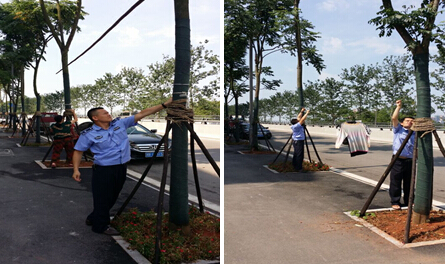 许多市民喜欢在绿化带、护栏等公共设施上晾晒、吊挂衣物,其实,这些做法不仅影响了市容市貌,而且还违反了相关规定。近日,芦淞城管大队三中队组织执法队员,对辖区内的乱晾晒行为进行专项整治。