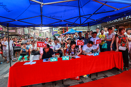 6月12日上午,芦淞服饰步行街格外热闹,“玉城置业”杯第三季“新芦淞·最强音”歌手大赛在金冠市场前坪强势启动, 40位来自民间的歌唱选手参加了预热赛的比赛。选手们个个准备充分、激情演唱,亲友团和围观群众的掌声、喝彩声此起彼伏,现场人气火爆。
