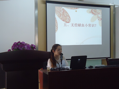 当天,市中心血站的罗莉娜讲师讲座为主题“奉献爱心、接力生命”。通过PPT,以通俗易懂的语言,生动的例子让大家了解到血液对于人体的重要性,向大家介绍了关于血液的基本常识、献血注意事项、献血程序、无偿献血的意义以及相关法规等方面的内容,深入浅出地分析了无偿献血的科学性与可行性,图文并茂的讲义,鲜明生动的事例,使整个讲座气氛活跃。