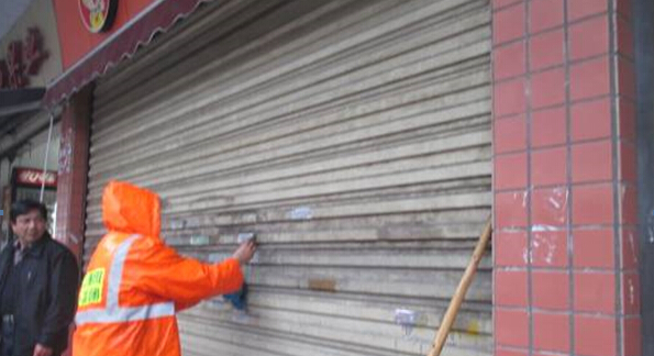 近日,芦淞区环卫处业务科组织清洁公司对辖区内街道的牛皮癣进行突击检查,对那些牛皮癣多的路段立马通知公司进行整改并加重处罚,通过整改后,牛皮癣清理情况明显改善,今后该项专治整顿将持续下去。