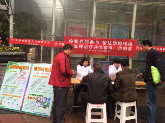 3月23日,芦淞区建宁街道社区卫生服务中心组织3名医生护士在中国城前坪开展“你我共同参与,依法防控结核”健康咨询活动。活动中,虽然下着毛毛细雨,但丝毫不影响活动的进程,医护人员热情的为市场的工作人员、环卫工人、过往的流动人口以及附近的居民宣传结核病的早期症状、治疗结核病的常用药物以及结核病的危害,重点体现了防控结核,人人有责的必要性,并现场发放结核病相关宣传资料100余份,得到了广大群众的一致好评。