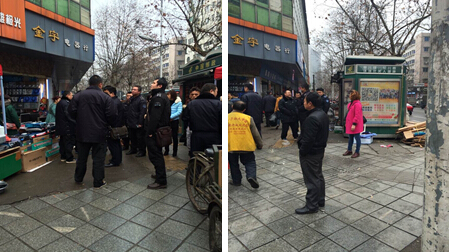 元宵佳节过后,各类商铺均已恢复营业。三角叉附近个别商家趁着新年开张,在店铺门口搭起摊子甚至架起帐篷进行促销活动。芦淞城管大队南片区中队针对此违章现象立即展开整治行动,城管队员及时赶到现场制止当事人违章行为,责令当事人立即清除违章物品,恢复道路畅通。通过城管队员耐心的批评教育,当事人深刻认识到自己的违章行为,随即在城管队员的帮助下清除了促销摊点,并清理了现场。