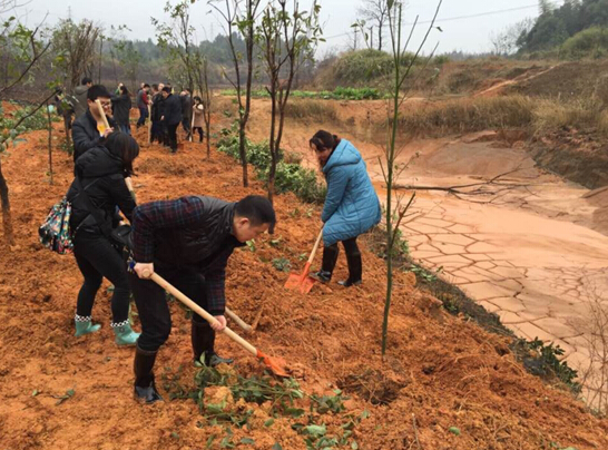 所有机关干部热情飞扬、互相配合,植树点一片繁忙景象。大家有的奋力挥锹铲土填入树坑中,有的用脚培实新土,有的提水浇灌……道道工序做得认真细致。大家边干边交流加强生态建设、改善生态环境的看法,现场充满了欢笑和欣喜。经过一番热火朝天的劳动,一棵棵新栽种的苗木迎风挺立,把周边装点得生机盎然。