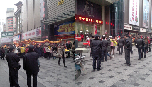正月十二,芦淞区市场群内各大商场已于今日陆续恢复营业了,场面十分热闹,人流量也开始持续上升。与以往不同的是,今年各商场及商户没有燃放烟花爆竹,而是改用传统舞龙舞狮等低碳环保的方式清新开业,芦淞区市场群片区全体队员出动,对该日各大商场举行活动进行现场维护,随时待命对突发事情进行应急处置,确保市场群内环境整洁有序。
