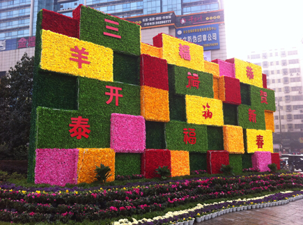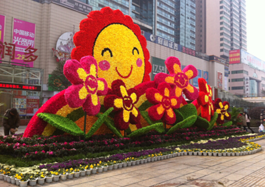 二是摆放鲜花场景。为打造百花盛开的新春景观,在中心广场交通岛、通道护栏、家润多前坪、电信大楼前及桥南桥北绿地、服饰群欧式花钵内摆放时令花卉,如羽衣甘蓝、三色堇、西洋杜鹃、万年青、散尾葵等花卉,共计12万余株。