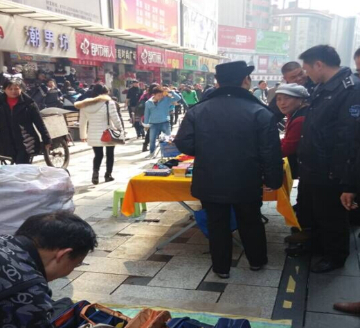 城管队员文明执法、依法执法,及时对占道经营的游商进行劝离,对出店经营的商贩进行批评教育并要求现场整改,坚决对不文明行为 “零容忍”,取得很好的整治效果。