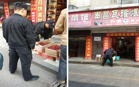 为全面落实创文迎检工作,芦淞城管大队结合实际,全员发动,在辖区内进行全面督查。 12月22日,芦淞区城管大队机动队对辖区主次干道、重点区域违章出店经营行为进行了集中整治。整治过程中,执法队员对存在违章行为商铺业主进行了批评教育,责令整改违章行为,并且督促各个门店严格履行“门前三包”责任书的规定。各业主纷纷表示支持和配合,主动在城管队员的帮助下,把店外堆放的货品搬入店内,恢复良好的市容秩序。