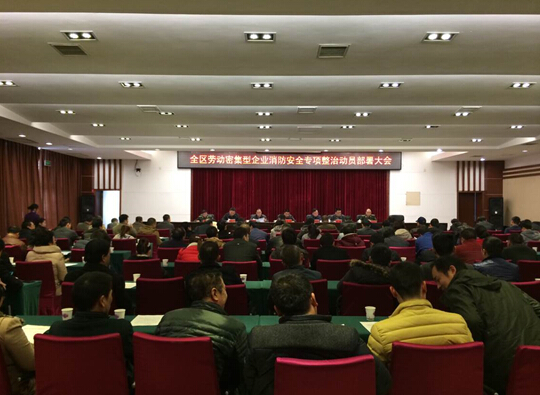 12月18日下午,芦淞区安委会在区政府中会议室组织召开了全区劳动密集型企业消防安全专项整治动员部署大会。参加此次会议的有各乡(镇)和街道办事处(大京风景区管委会)、区委区政府两办督察室、安监、消防等20余家单位负责人及各劳动密集型企业代表。