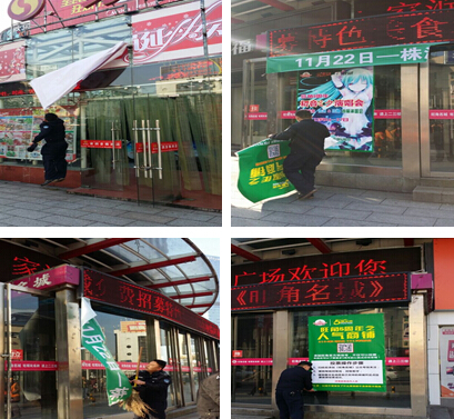 近日,天气转好,又临近年底,家润多广场附近各大商家为了抓住商机,大力做宣传工作,纷纷张贴大面积违章海报,悬挂违章广告条幅等等,严重影响了城区市容环境。执法队员立即对商家业主进行了批评和教育,告诫其可采用其他文明、有效的宣传手段进行宣传。各商家业主纷纷表示理解和配合,当场与执法队员一同将违章海报、条幅清除干净,还市民一个整洁、干净的市容环境。