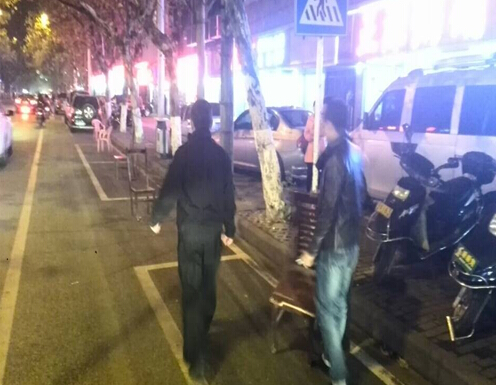 近日,接到市民投诉,贺嘉路夜市道路两侧停车位上,附近商家或居民长期用凳子占道,严重影响过往车辆的正常停靠。得知这一情况,执法队员立即来到该路段查看情况,发现确有多数夜市店主会提前在路边放置桌凳等抢占车位;一些店主甚至还圈占人行道,预留车位。到了吃饭时间,道路两侧停的车辆特别多,停车秩序很混乱,存在极大的安全隐患。