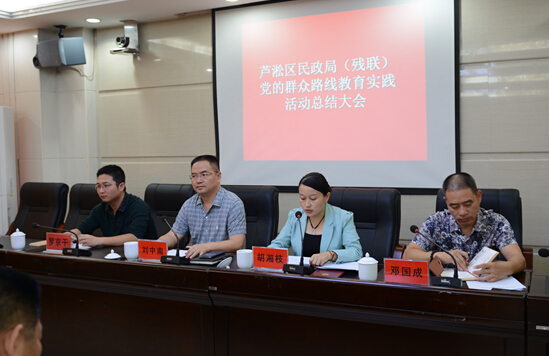 民政局局长刘中南代表民政局党支部做了总结讲话。他指出,民政局、残联开展党的群众路线教育实践活动以来,按照“照镜子、正衣冠、洗洗澡、治治病”的总要求,以为民务实清廉为主题,着重查找和解决“四风”问题,认真落实中央、省市委和区委关于改进工作作风、密切联系群众的各项规定,扎实开展群众路线教育实践活动,达到了活动预期目的,取得了一些实质性成果,主要体现在:形成了自觉贯彻群众路线的共识;党组织生活恢复了生机活力;“四风”突出问题得到了有效整治;解决了一些关系群众切身利益的问题。