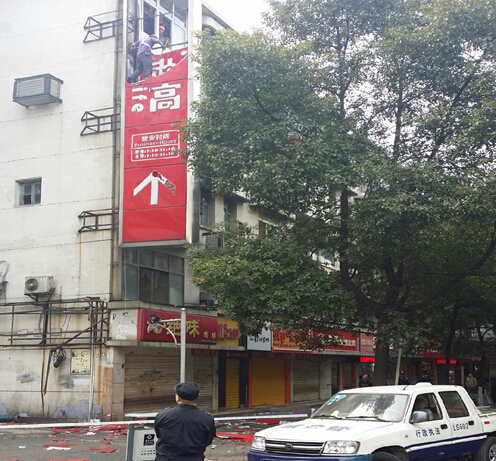近日,芦淞区城管大队对全区主次干道一楼以上户外大型垂直广告开展整改拆除行动。前期,各片区城管队员已对所属辖区内悬挂违规广告牌的门店业主下达了书面限期整改通知书并摄像取证,执法队员要求各业主在期限内自行拆除整改到位。针对逾期未完成整改的广告牌,城管大队将在白天组织队伍进行拆除。10月16日上午,城管队员对贺嘉路上一家步步高超市户外大型广告牌进行了拆除。由于该广告牌长15米,宽3米,拆除难度大,危险系数高,大队请来专业队伍配合一起进行了拆除。