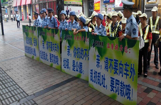 9月15日早上,芦淞区城管大队监督员片区队员和城管监督员在市区各主次干道,手持醒目的文明宣传提示牌,提醒广大市民朋友文明守礼,自觉遵守文明法规,争做文明市民。同时,监督员片区将加大整治力度,对行人乱穿马路、乱扔乱吐等不文明行为进行纠章和处罚。并配合交警、公安等部门对机动车司乘人员向车外乱扔乱吐行为进行现场处罚。