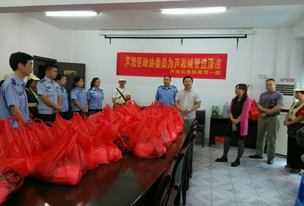 政协委员们对城管执法队员和城管监督员克服高温酷暑、坚守工作岗位,为市民提供干净整洁、井然有序的城市环境表示敬意和感谢,并为全体城管队员和城管监督员送上绿豆、白糖等慰问物资。