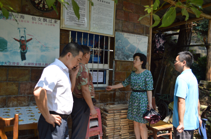 7月31日上午,芦淞区政府副区长程轶辉在区政府办副主任毛张霞、区旅游局副局长龙涛、大京风景区管委会副主任何兴国陪同下到大京风景区突击检查景区设施运营安全情况。