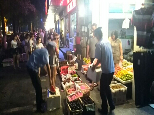 近日,贺家路沿街的多家水果店到了晚上经常将水果摆放在人行道上进行销售,严重影响市民出行。