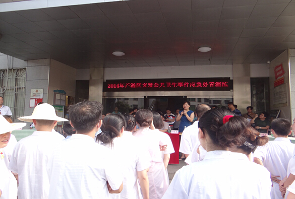 “芦淞区某某单位,我这里是某某学校,昨天下午到现在为止,我校有三十多名学生陆续出现恶心、腹痛、腹泻等症状,请你单位前来调查处理。”7月9日,芦淞区2014年突发公共卫生事件应急处置演练在龙泉社区卫生服务中心正式拉开帷幕。市卫生局副局长刘建军、市疾控中心主任龙术国以及芦淞区曹运社副区长、卫生局梁雪峰局长均亲临现场进行了观摩,来自市疾控中心的四位流调专家担任现场评委。
