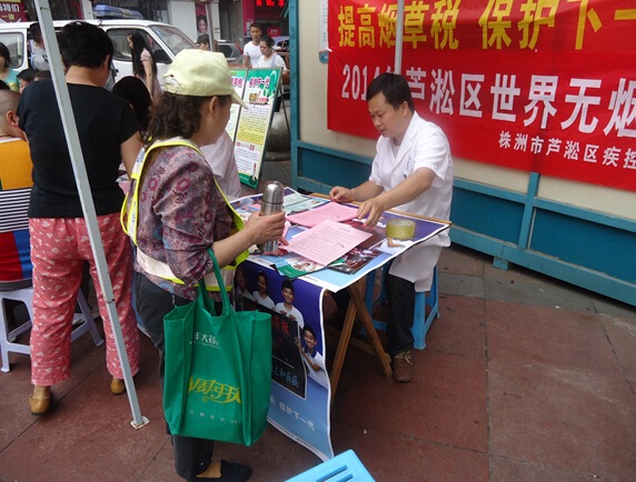 5月31日是世界卫生组织发起的第27个世界无烟日。本次世界无烟日的主题是“提高烟草税,保护下一代”。为动员全社会力量,进一步保护青少年免遭烟草烟雾危害,让孩子们健康茁壮地成长。近日,芦淞区疾控中心联合市妇幼保健院及辖区各社区卫生服务中心在人群熙攘的市场群开展了第27个世界无烟日系列宣传活动。