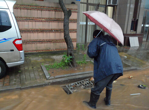 25日凌晨,暴雨持续多时,我局维护队队长晏作为带领工作人员迅速赶赴灾情严重的地段,急时清理因强降雨雨水所带垃圾造成的泄水井堵塞,保持雨水通顺流入下水道。在灾情严重的锻压后街,因雨水流量过大冲走井盖,为避免市民掉进下水道,设置护栏,派专人把手。当日上午,下水井盖已加装,灾情得到了有效控制。此次降雨因防范较早、处理及时,确保了人民群众的生命财产安全。