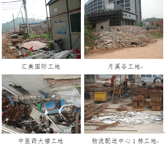 为切实抓好当前建设领域安全生产工作,坚决杜绝各类安全事故发生,确保辖区工地安全生产形势持续稳定, 5月份,芦淞区城建局对辖区工地安全生产事故隐患排查情况进行督查,重点对消防防护、安全管理、文明施工、高处作业、施工用电、物料提升机与施工升降机、施工机具、脚手架等八大项进行检查。发现建筑材料摆放不整齐、建筑垃圾乱堆放问题较为突出。