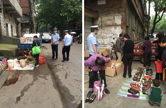 龙泉路每天早上八点以前,有很多摊贩在此占道摆摊,他们将运输工具随意停放在路边,占道贩卖蔬菜水果,衣服鞋子,使原本就狭窄的道路更加拥挤,给车辆通行和居民出行带来很大不便,附近居民怨声载道。芦淞城管大队在了解这一情况后,立即安排执法队员对龙泉路占道摆摊的现象进行了整治。整治中,执法队员向占道摊贩宣传城市管理相关规定,并将他们引入附近的正规市场经营。整治取得很好效果,芦淞城管大队也将继续加大龙泉路占道摆摊现象的整治,还给居民一个满意的出行环境。