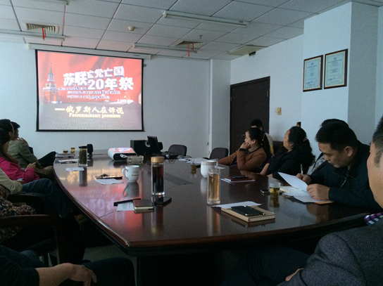 4月22日,芦淞区城管局组织机关党员干部在会议室集中观看电影《苏联亡党亡国20年祭--俄罗斯人在诉说》。影片深入分析苏联亡党亡国的历史根源及其教训,提醒广大党员领导增强居安思危意识,进一步坚定共产主义和中国特色社会主义理想信念,坚定不移走中国特色社会主义道路。