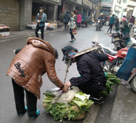 近日,芦淞城管大队组织队员对此处违章占道摆摊的摊贩进行了劝导。四中队队员张华在劝导过程中,主动帮助年老的菜贩将菜担子挑到正规市场贩卖,老人家激动地向城管队员连连道谢。城管队员用自己的实际行动树立了文明执法、为民服务的良好形象。