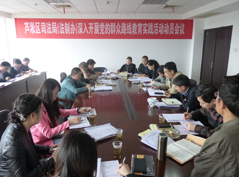 3月28日上午,芦淞区司法局(法制办)召开了深入开展党的群众路线教育实践活动动员会议,区人大常委会副主任陈小平、区委教育实践活动第十督导组成员、区司法局和区法制办全体工作人员参加了会议。